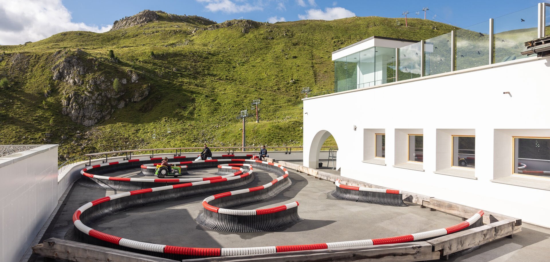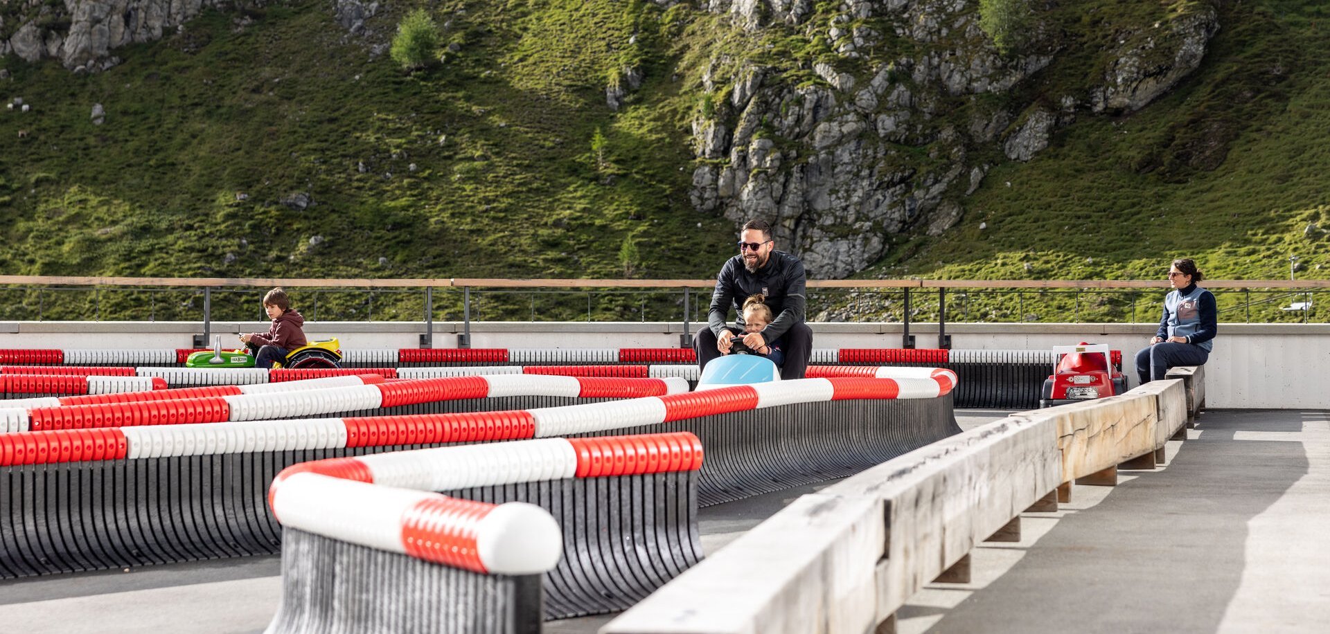 Die Elektrofahrzeuge-Rennbahn: Getankt werden die vier nigelnagelneuen «Boliden» mit einem Einfränkler, ihre Maximalgeschwindigkeit liegt bei 10 km/h und je nach Streckenführung müssen die Piloten mit ihnen vier bis fünf Kurven meistern. Wer möchte da nicht noch einmal Kind sein.