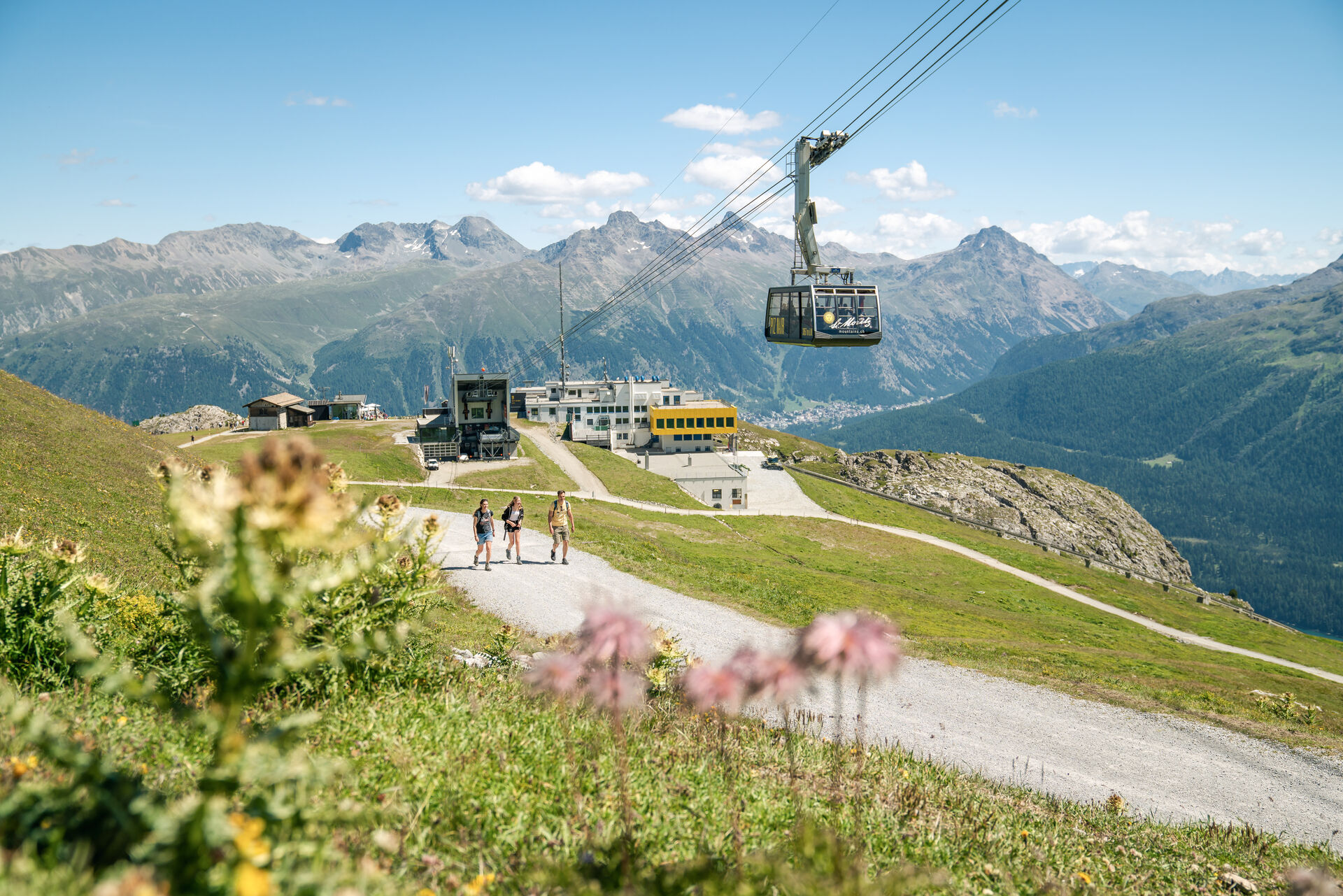 Der Bergweg knirscht sanft unter den Füssen, am Wegrand schwingen die Gräser im Wind und auf den Gipfeln erkennt man die letzten Ecken Schnee – einfach herrlich. Entdecken Sie beim Bergwandern auf Corviglia und Muottas Muragl die Kraft der alpinen Natur.