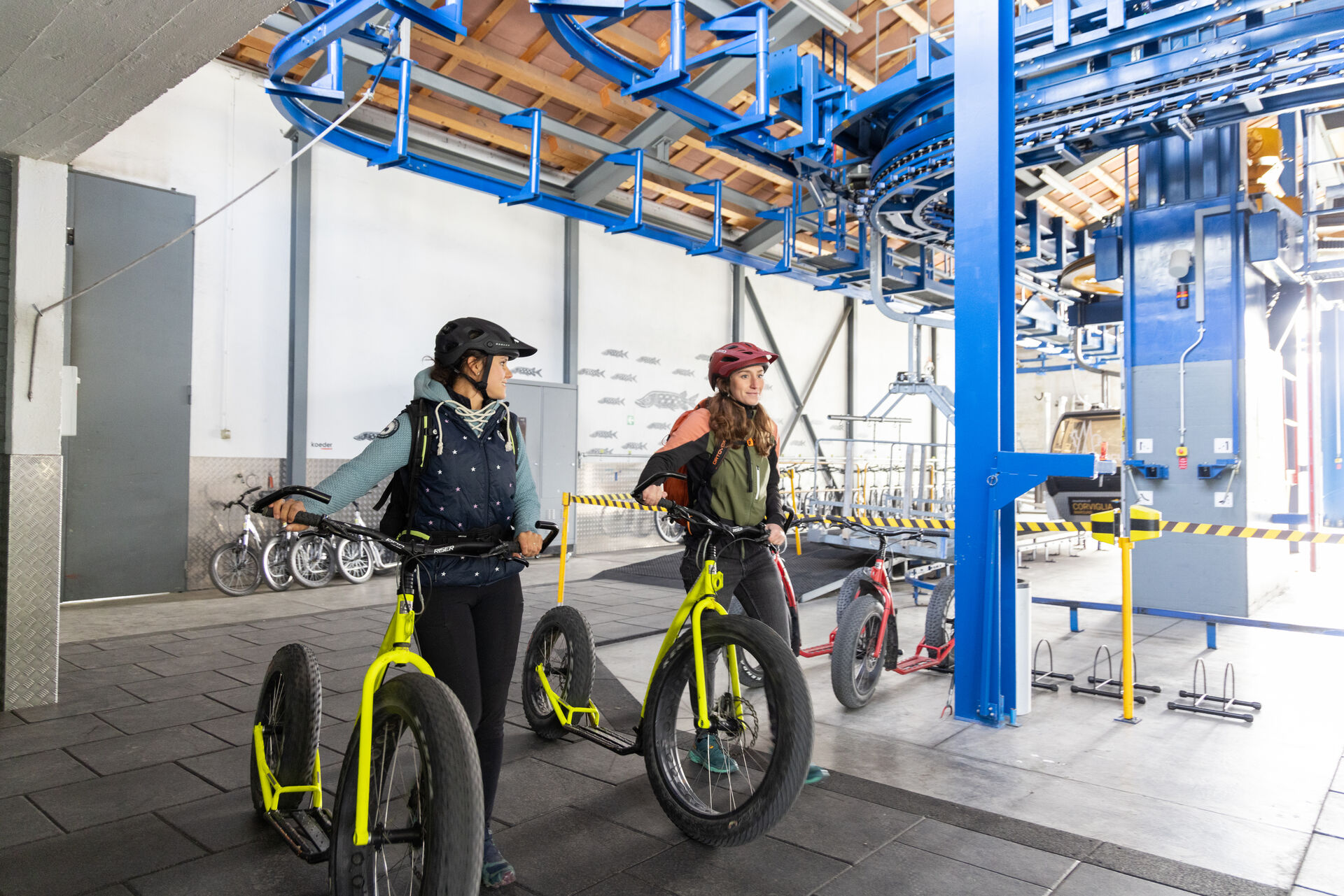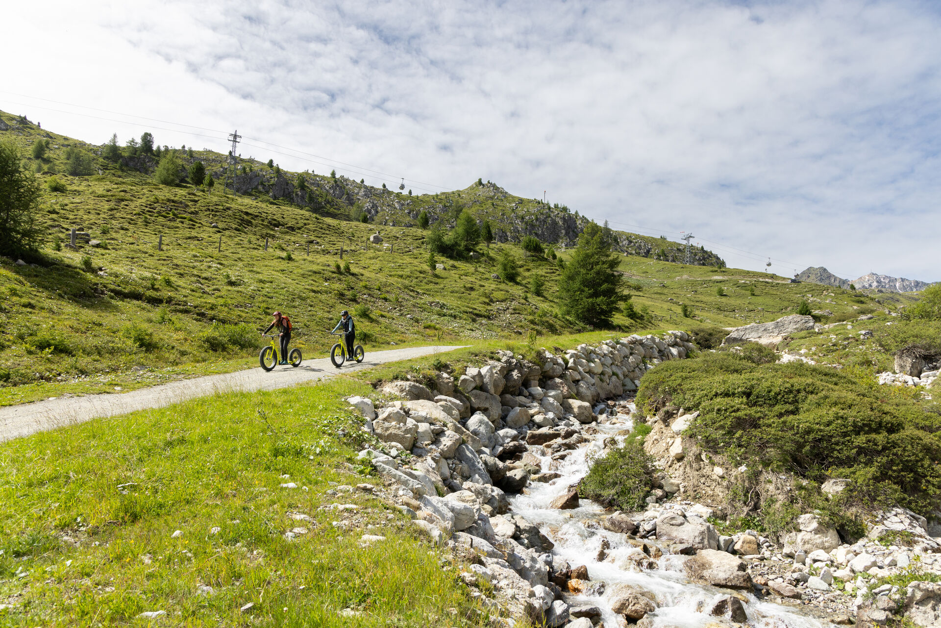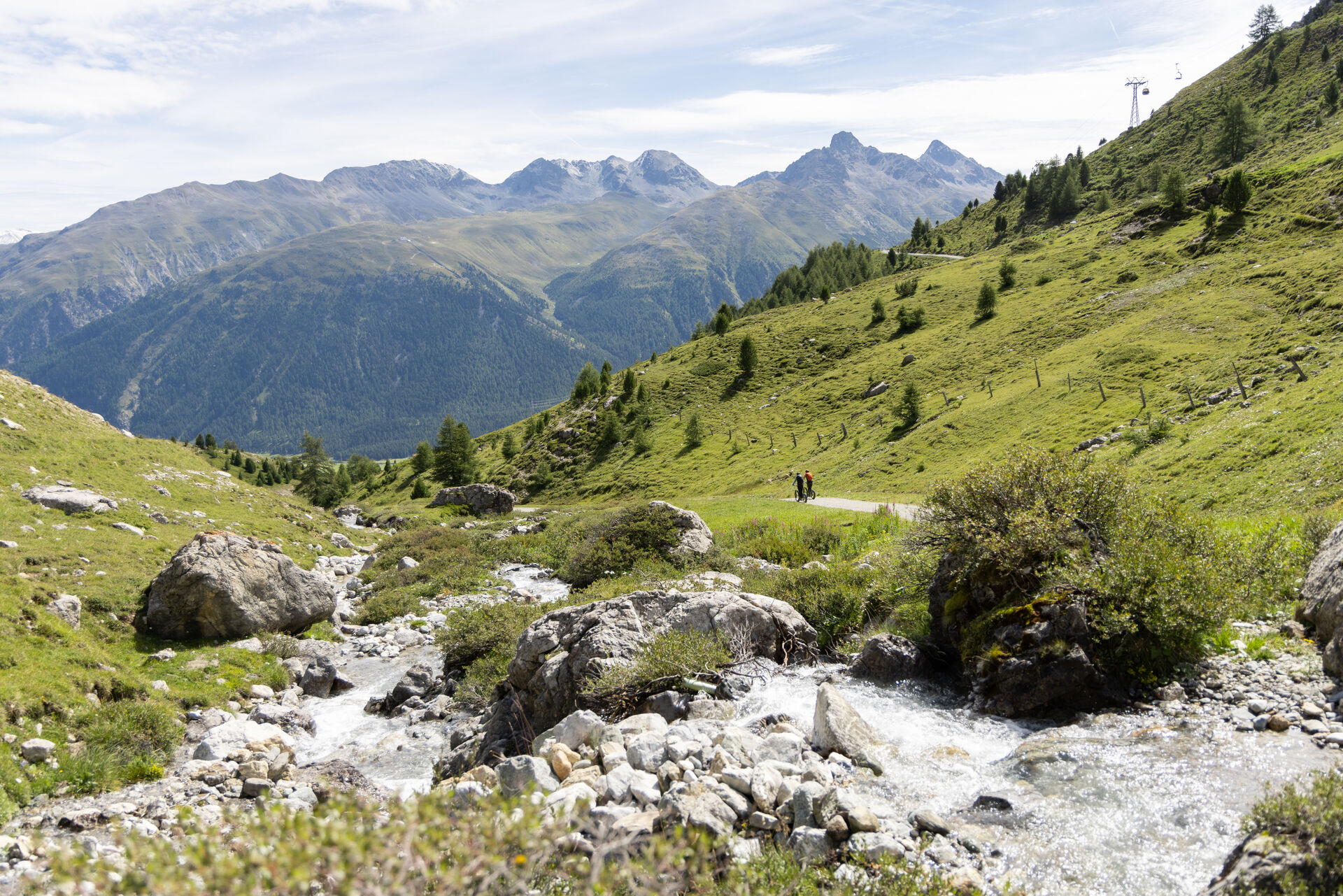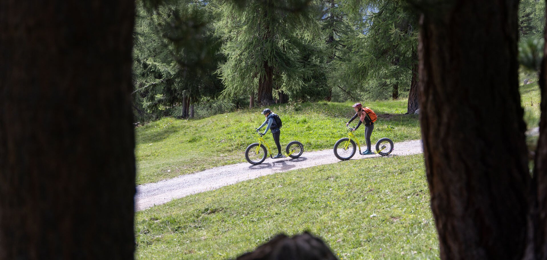 Wendig, schnell und definitiv eine der aufregendsten Möglichkeiten, den Weg von der Bergstation Marguns hinunter nach Celerina zu geniessen: Die Abfahrt mit dem Downhill-Trottinett. Vorbei an blühenden Alpwiesen und den Kiesweg bergab führt die Route gemütlich durch den Wald bis zur Talstation Celerina.