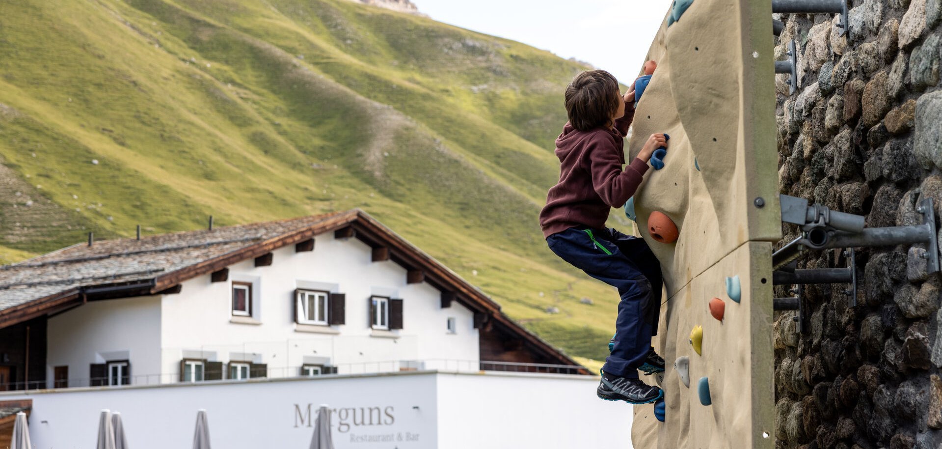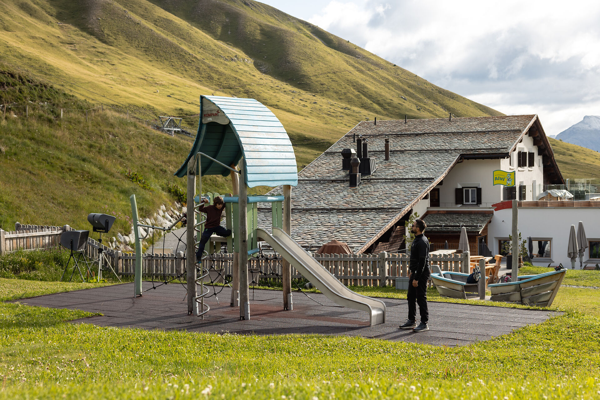 Einmal ums Restaurant Scatla beim Romantik Hotel herum, und schon sind der Kletterturm samt Seilbrücke, die Schaukelkombination, die Seilbahn, die Rutschbahnen und viele weitere Spielmöglichkeiten zu sehen, die Kinderherzen höherschlagen lassen. Etwas Ruhe für die Eltern wird auf der Sonnenterrasse samt Erfrischung serviert. Apropos Erfrischung: Beim Scatla steht ein Glacé-Wagen mit feinstem Mövenpick-Eis!