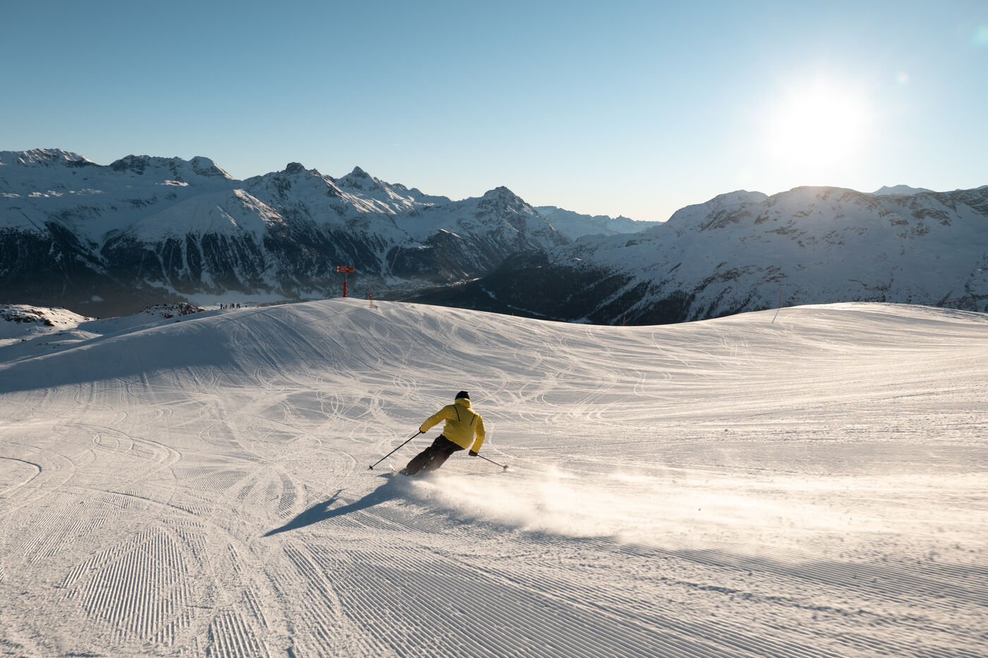 24 Anlagen, 38 Pisten mit 155 Kilometern, davon 42 km blau, 79 km rot und 34 km schwarz markiert: Ja, die Corviglia ist ein echtes Ski-Paradies. Entdecken Sie unsere Pisten-Highlights für Ihren perfekten Skitag in St. Moritz.