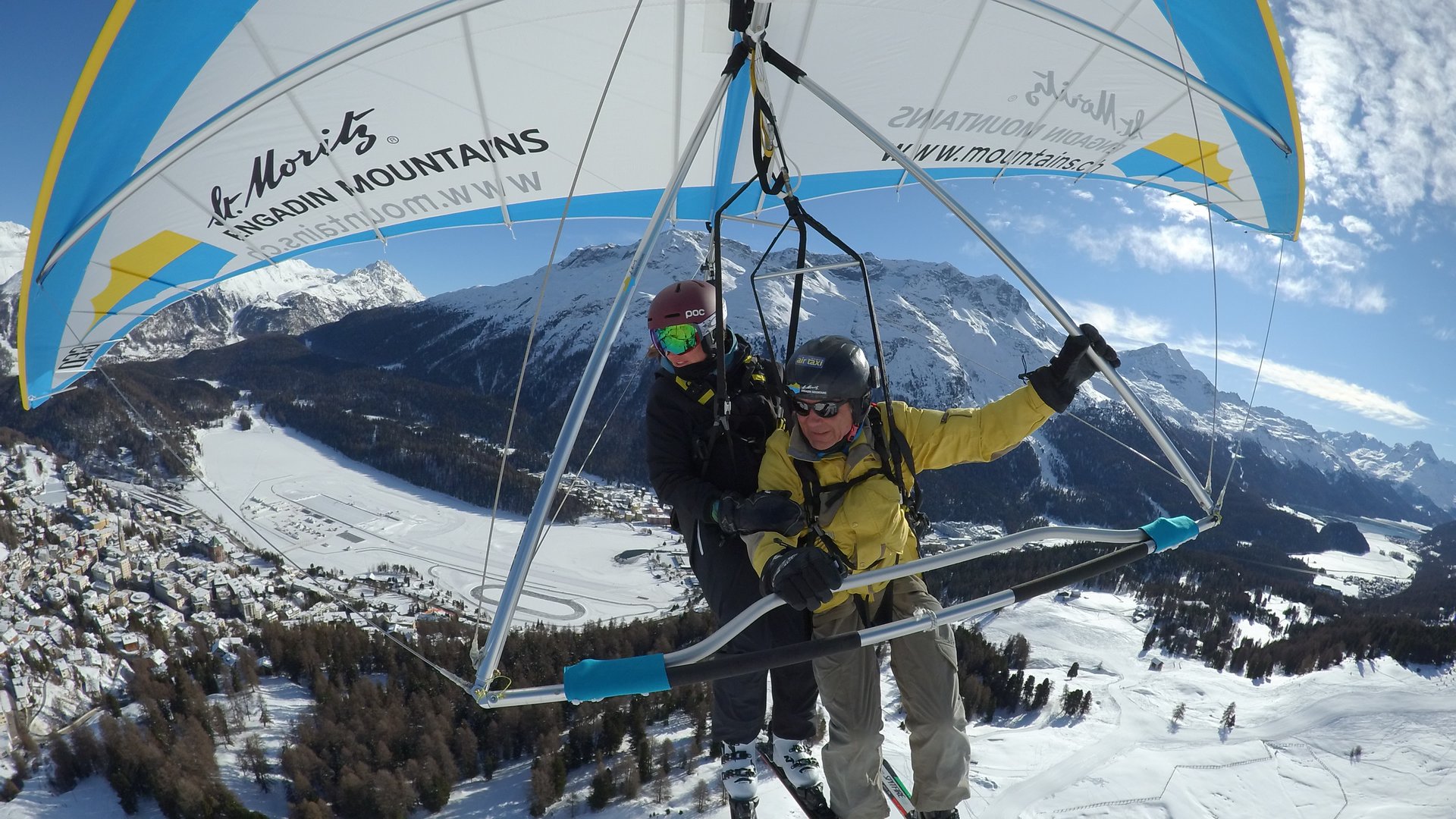Your unique experience: with a delta or paragliding flight from the mountain to Lake St. Moritz. A short approach and we are already floating in airy heights over the ski slopes and enjoying the breathtaking view of the Upper Engadine and St. Moritz. The special experience will be documented with photos and a video.