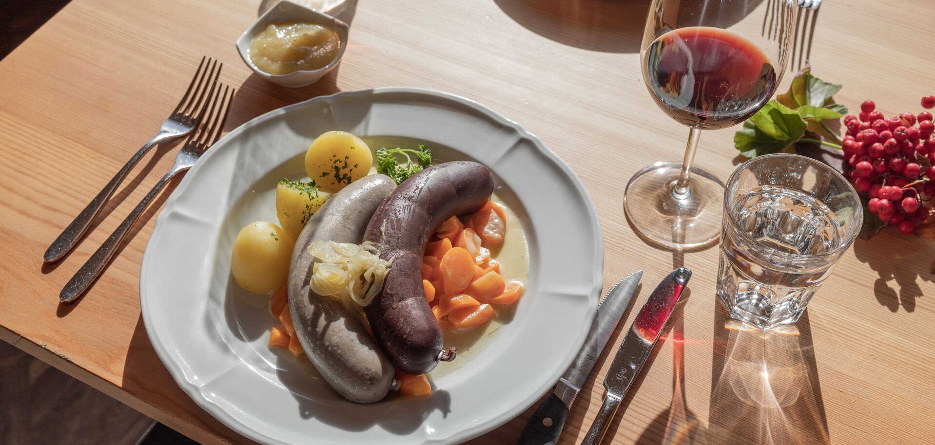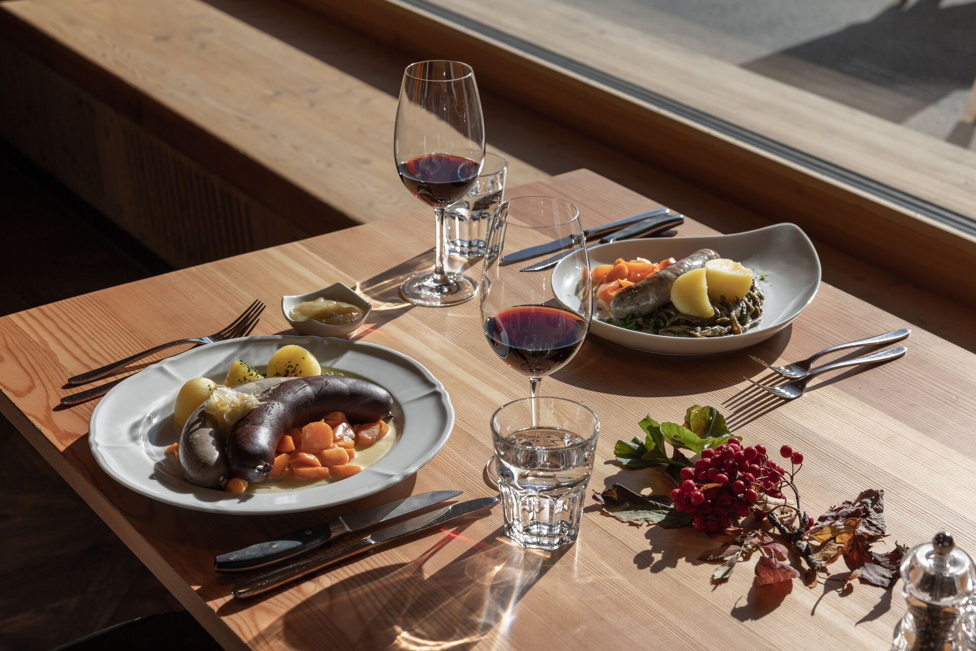 At the traditional "Metzgeta", we serve Schnörrli, Öhrli, Schwänzli, blood and liver sausages and much more from the Marguns Alpine pigs at the buffet in the Marguns restaurant. This culinary experience will be accompanied by music. We look forward to your visit.