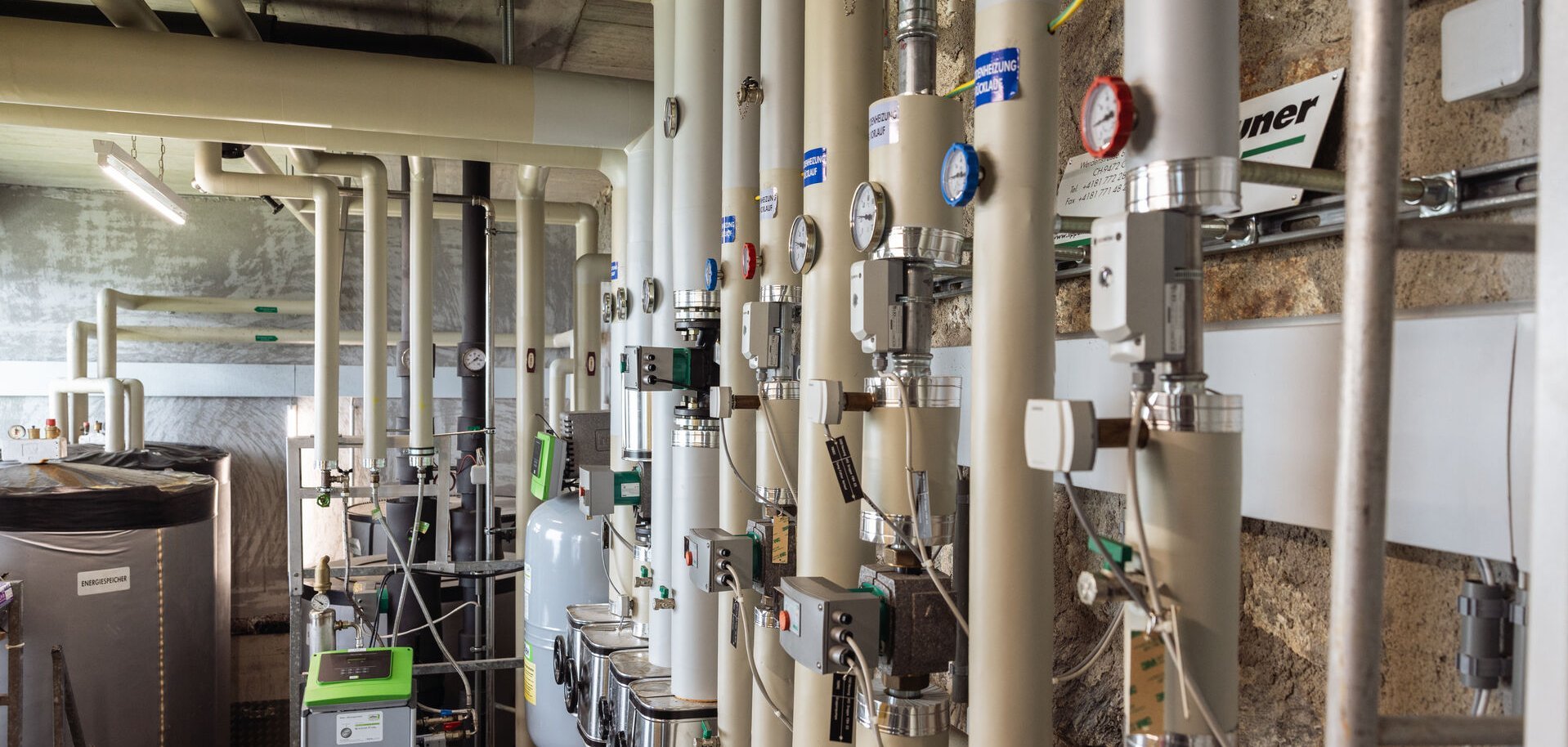 56 m² of tube collectors in the panes of the windows of the basement floor provide the necessary energy for hot water in the building of the Romantik Hotel Muottas Muragl. 16 geothermal probes with an average length of 200 metres, a total of 3200 metres, supply the entire building with geothermal heat. Additionally, 228 metres of the most efficient photovoltaic system in Switzerland is situated along the railroad track and provides for the generation of the required electrical energy. If surplus solar energy is available, it is stored in the ground via ground probes. This way, the earth storage mass regenerates itself. Waste heat from cooling systems, heat recovery from exhaust air, and waste heat from the machine room are further complementary measures that make the new building a sustainable and environmentally friendly operation. In the annual balance, the mountain in fact produces more energy than the building actually needs.
