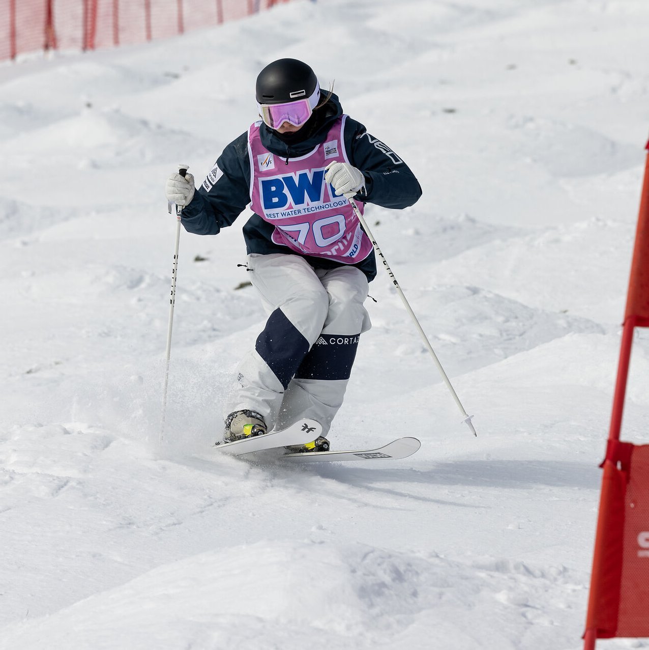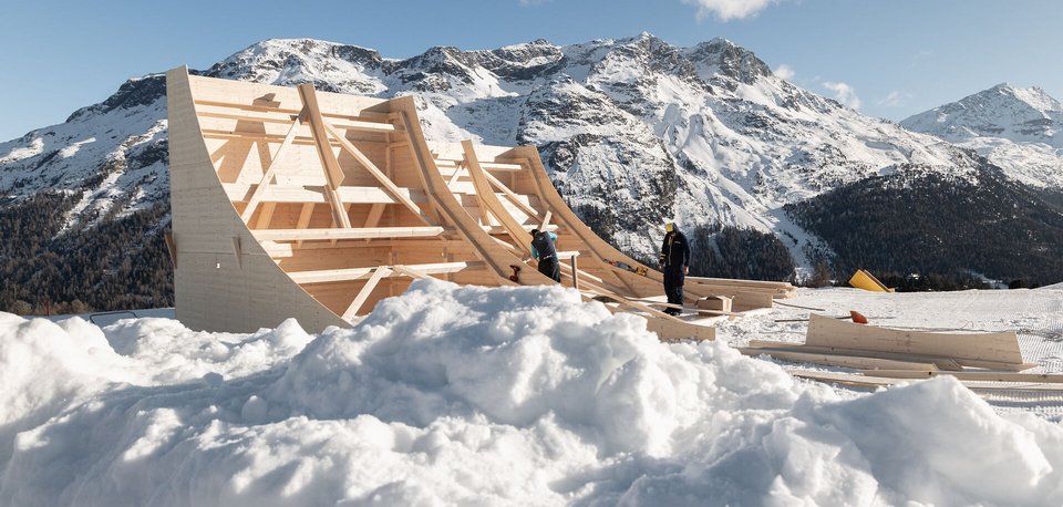 Let's start with the aerials: this discipline presents us with the particular challenge that we need a lot of snow. Both the inrun and the jump have to be completely modeled out of snow. Fortunately, no terrain adjustments are necessary. The FIS gives clear guidelines on how the angles of the approach and landing must be designed, for example. The wooden structure that serves as the base for the jump also plays an important role. The actual jump is built on this wooden structure, whereby the exact radius is also specified here. There are therefore many technical requirements that have to be met during construction, and we receive a great deal of support from Swiss Ski, more specifically from the competence center that specializes in aerials and moguls. They will also be at our side during the event. The location of the moguls is particularly prominent: the start is at support 9 of the Salastrains chairlift, so that the course is clearly visible. Here too, there are clear guidelines from the FIS. First, the slope is leveled to create an even, parallel plane with the right length and the required gradient. The jumps are already built in. Finally, the slope machine is used to form the humps at regular intervals. If necessary, these are further adjusted by skiing to perfect the course. As this is a parallel event, it is particularly important that the conditions on both courses are identical. We already have experience in snowboard parallel - both in slalom and giant slalom. This is because a team parallel event was held at the 2017 Alpine Ski World Championships, which was similar in terms of the course.